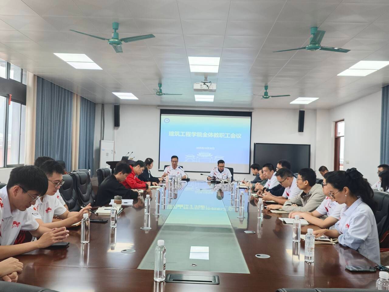 2025年10月30日上午,广西民族大学建筑工程学院全体教职工会议在武鸣校区实验楼A508会议室召开。本次会议由学院党委书记覃祖聪主持,学院全体教职工参与。