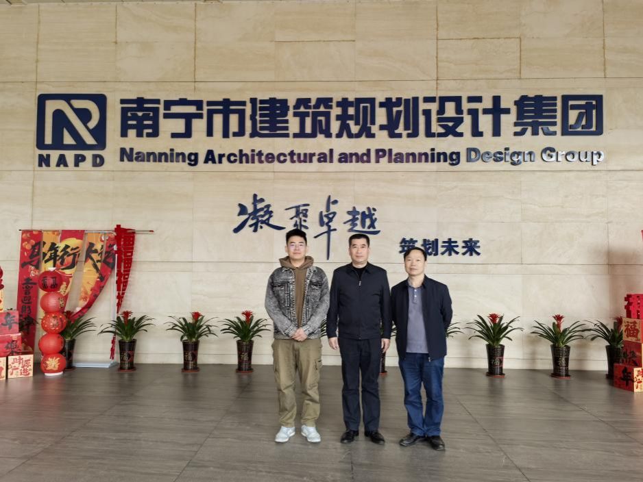 2月2日,我院何华斌教授、龙相如老师到南宁市建筑规划设计集团访企拓岗,与集团副总经理兼总建筑师汪烈进行座谈交流,何华斌详细介绍了广西民族大学建筑工程学院的专业设置和教学特点,汇报了学生参加各类竞赛获奖情况,推荐了优秀毕业生,仔细听取企业人才需求,共同分析建筑教育的前景和企业诉求,获得了第一手信息。汪烈简要介绍集团概况,指出南宁市建筑规划设计集团作为目前广西最大的设计国企,公司设计人员超1500人,承担了大量的国内工业与民用建筑规划和设计任务,60年来为国家做出了突出贡献,需要大量优秀且与时代同步的毕业生,欢迎优秀生来工作,汪烈也表达了企业同我院加强科研合作的愿望。