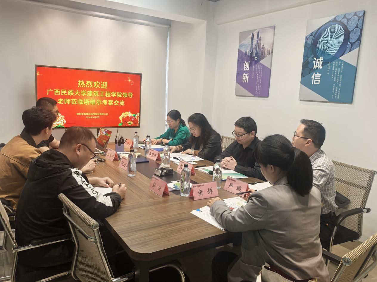 3月2日,建筑工程学院院长助理严鹏、工程管理系主任彭一林与蒋明辉、吴静芬、黄婵老师一行,赴深圳市斯维尔科技股份有限公司广西分公司开展合作交流及访企拓岗活动。斯维尔广西分公司负责人杜永明与郑兴、何述涛等企业代表热情接待并参与交流。双方围绕工程行业转型、智能建造趋势、人工智能技术应用以及人才培养与就业等议题展开热烈讨论。